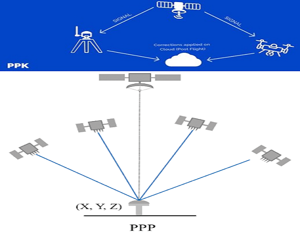 در مقایسه با روش PPK (Post-Processed Kinematics)، که نیاز به دو دستگاه بیس و روور و پردازش اطلاعات در مرحله بعدی دارد، PPP این امکان را میدهد که عملیات به صورت آنی و بدون نیاز به پسپردازش انجام شود. همچنین، برخلاف روش PPK که به پردازشهای بعدی وابسته است، اپراتورها میتوانند به طور مستقیم مختصات UTM با دقت مشابه روش RTK را دریافت کنند و تمامی این اقدامات بدون نیاز به دو دستگاه بیس و روور و در زمان کم انجام میشود.